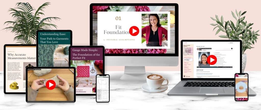 Bonus: The Perfect Fit eBook companion guides x3 – clear, printable, quick references covering gauge, ease, and a how-to-measure cheat sheet. With these by your side, you’ll never second-guess your tension, a measurement, or a pattern choice again. ($21 value)